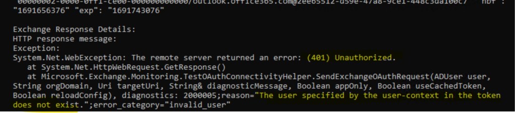 Although configuration finished successfully, OAUTH verification via Test-OAuthConnectivity cmdlet doesn’t work so far.