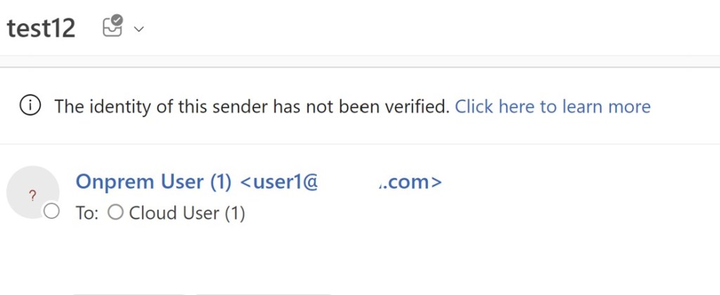 Messages are delivered from on-prem users to cloud users in Hybrid config. But users complain that senders are not resolved in address book (i.e. look like external senders) and sometimes messages go to Junk folder.