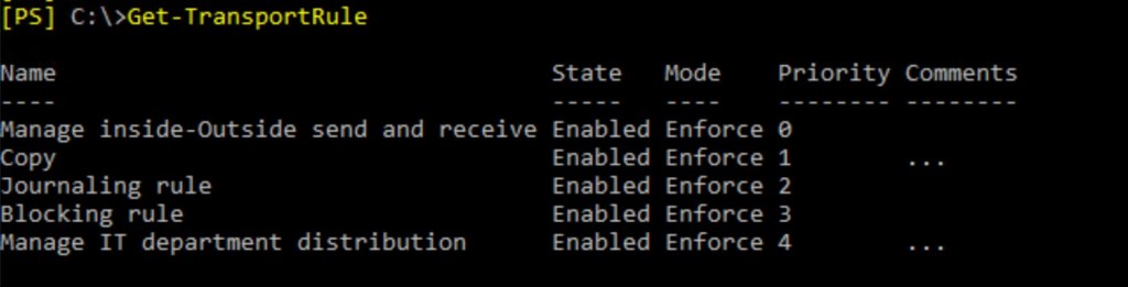 We can see, that message was deleted by transport rule. But how many transport rules do we have?