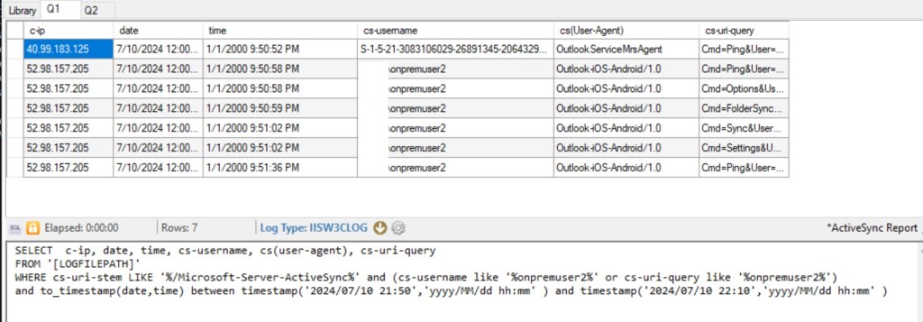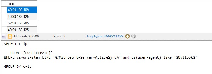 We can use LogParser to identify all possible user agents that are connected to our servers using Active Sync.