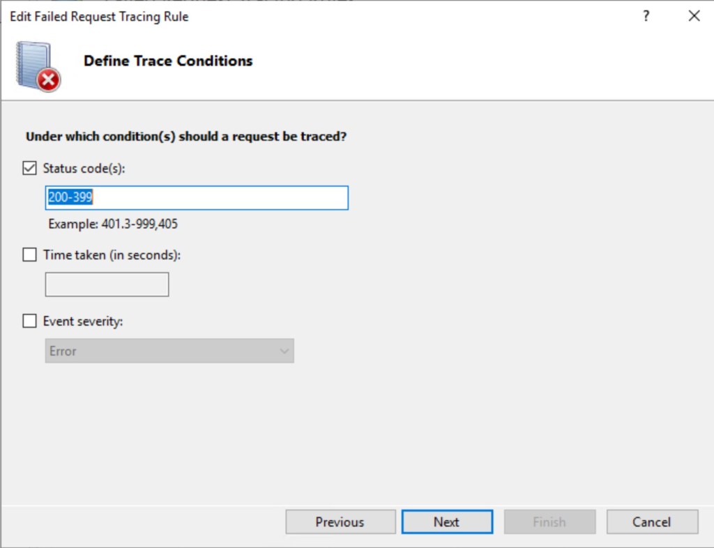 Because we donât have more information about that issue, we can configure and use Failed Request Tracing. We donât have a specific error code, so we can suggest, that is action is predicted and planned. In the end of the blog Iâve added some information on what failed request tracing is and how to configure it.